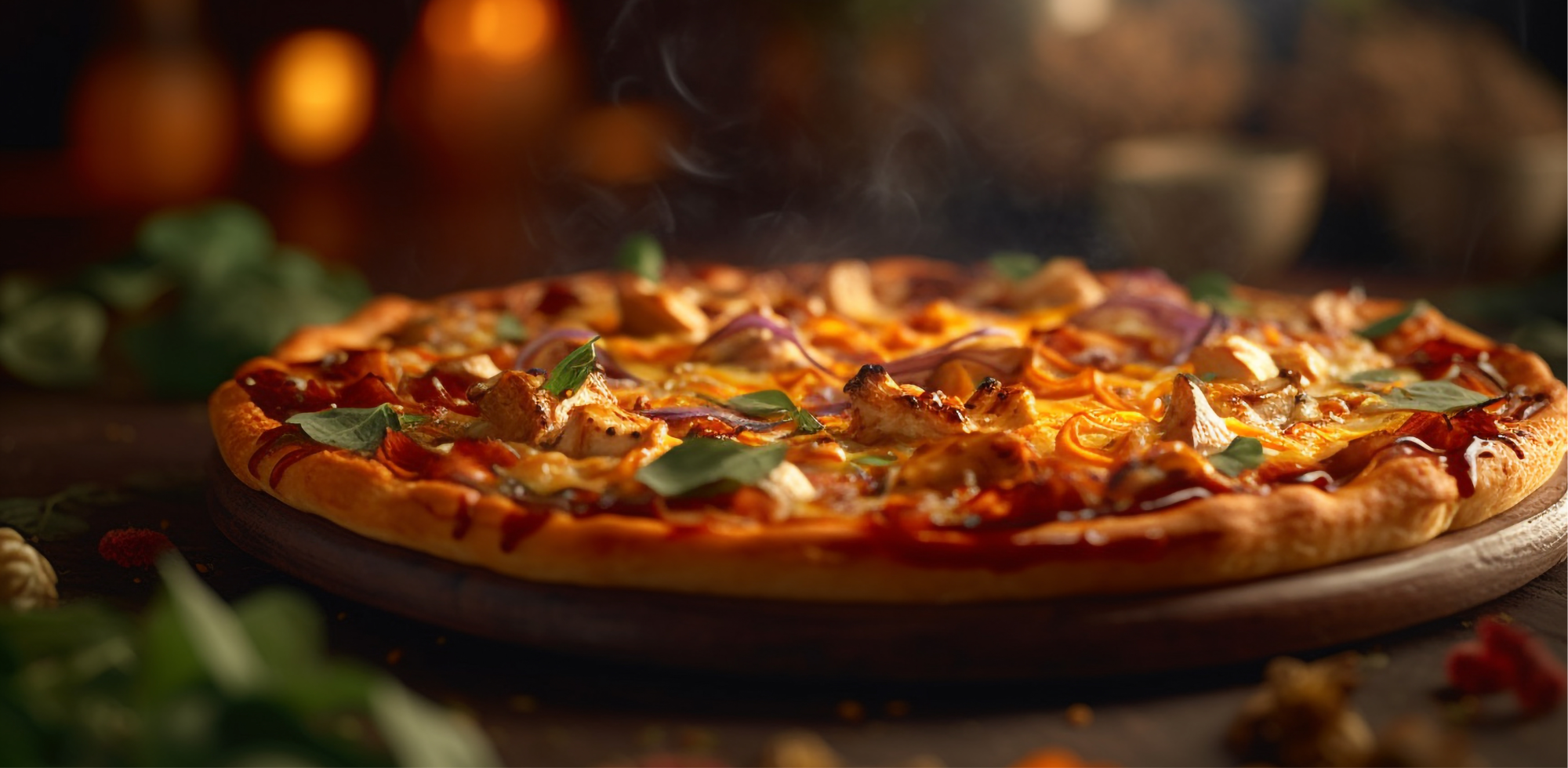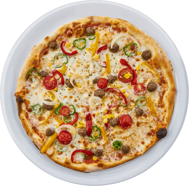 Rodízio de pizzas com mais de 50 sabores entre salgadas e doces, frango à passarinho, polenta frita, tábua de frios, buffet de saladas e abacaxi com canela.