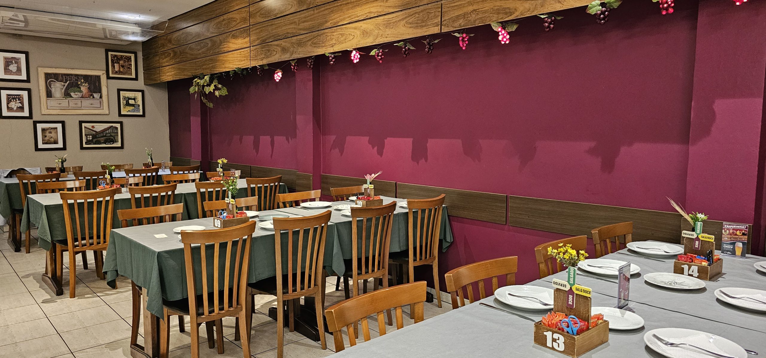 Mais de 60 sabores de pizzas salgadas e doces, acompanhados de polentinha frita, frango à passarinho, abacaxi com canela, buffet de saladas, queijo e azeitonas.